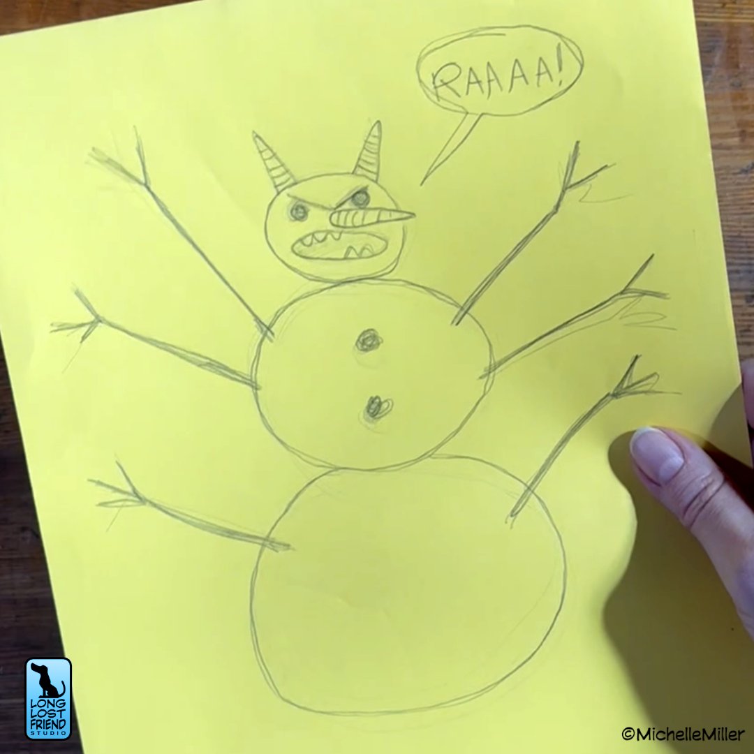 Michelle went with another winter icon, the simple snowman. But she turned Frosty into a six-armed beast with icicle teeth.