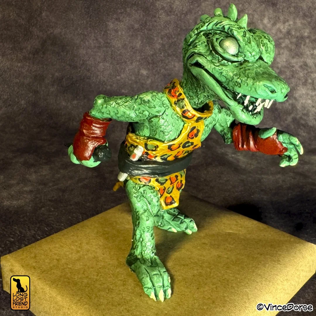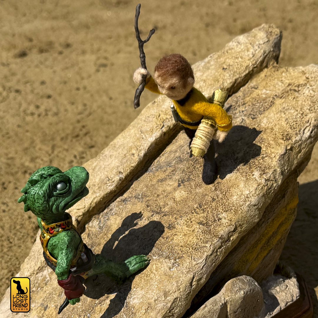 Michelle and I have engaged in plenty of one-on-one battles with each other over the years, most of them recorded and uploaded as “sculpt-off” challenges. This project was no different. She needle felted the brave but impulsive Captain Kirk, while I used polymer clay to sculpt the inscrutable and terrifying Gorn Captain.