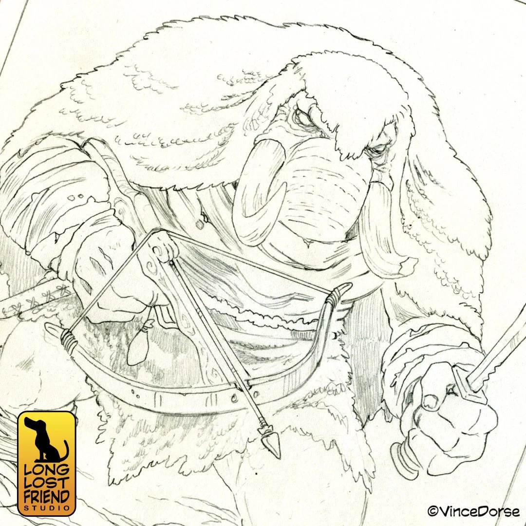 As a member of the Long Lost Friend Studio Patreon, after a year at the BFF tier, a supporter can request either an illustration from me, or a felted sculpture from Michelle. This time, my ticket got punched and I was tasked to draw Manmoth, an elephantine immortal in the Teenage Mutant Ninja Turtles Universe.